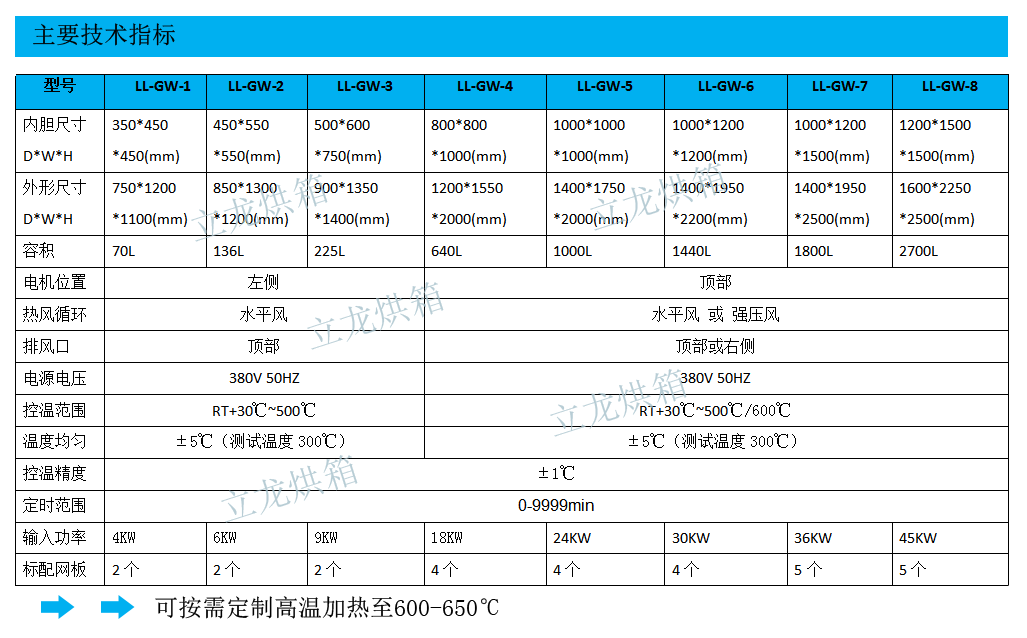 烘箱內(nèi)膽尺寸:1000mm*10000mm*1200mm(深*寬*高)